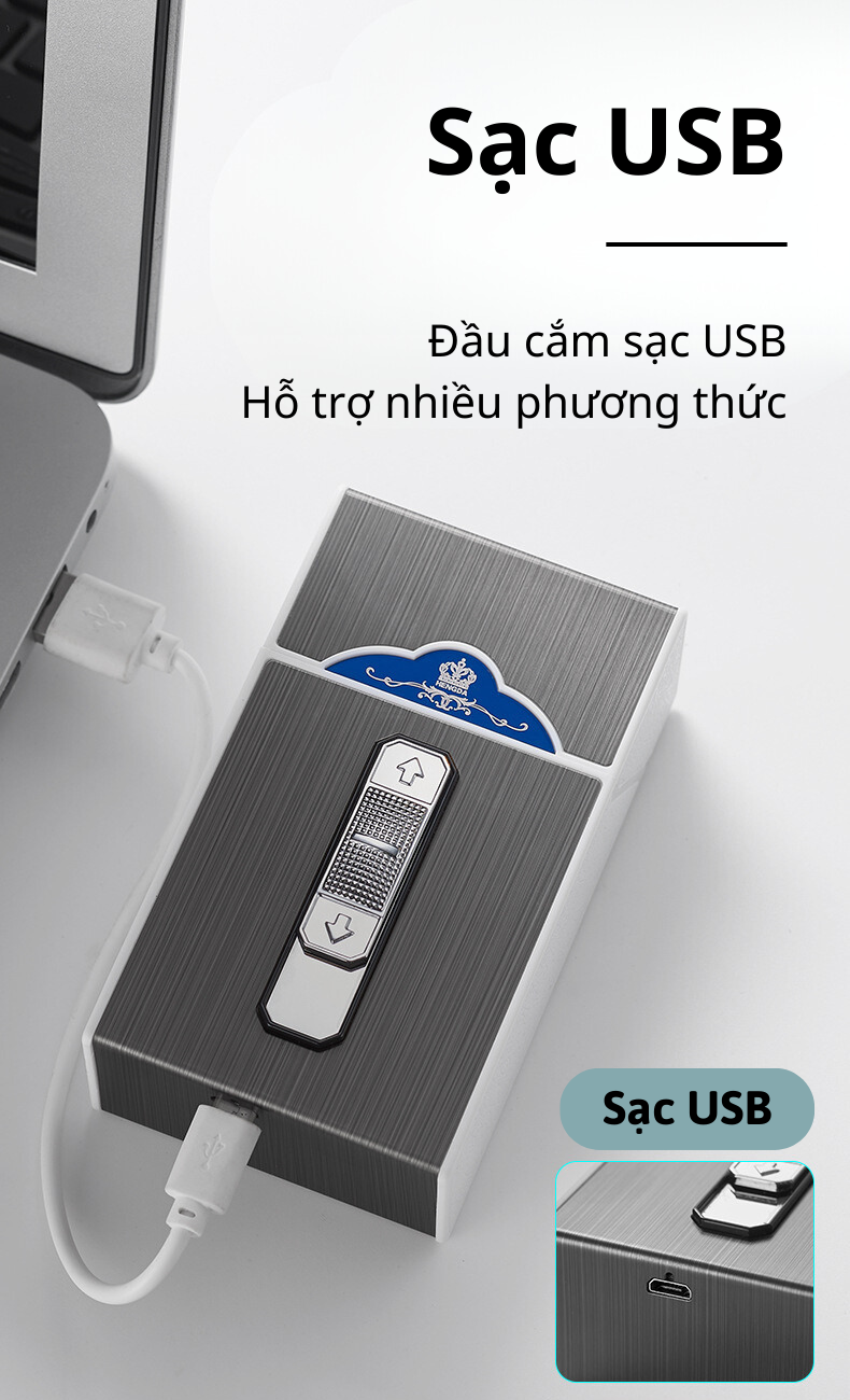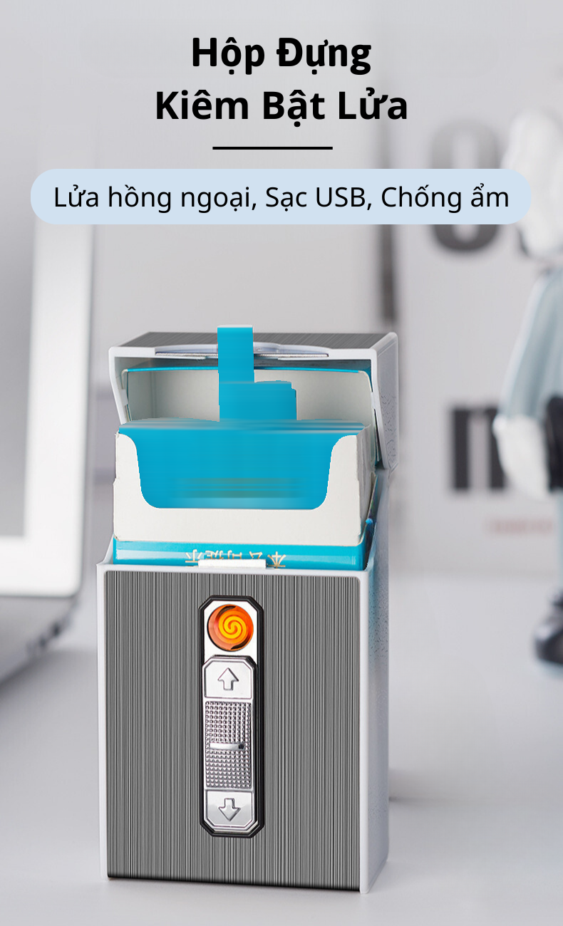 Hộp Đựng Tích Hợp Bật Lửa Chống Gió Điện Tử Cao Cấp