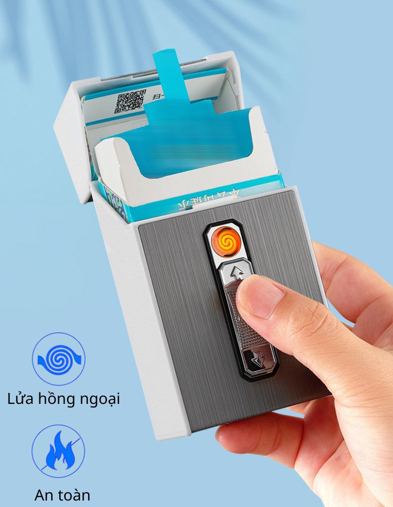 Hộp bật lửa kiêm hộp đựng có nắp bật nam châm, lửa hồng ngoại chống gió, hộp đựng chắc chắn hỗ trợ chống nước.