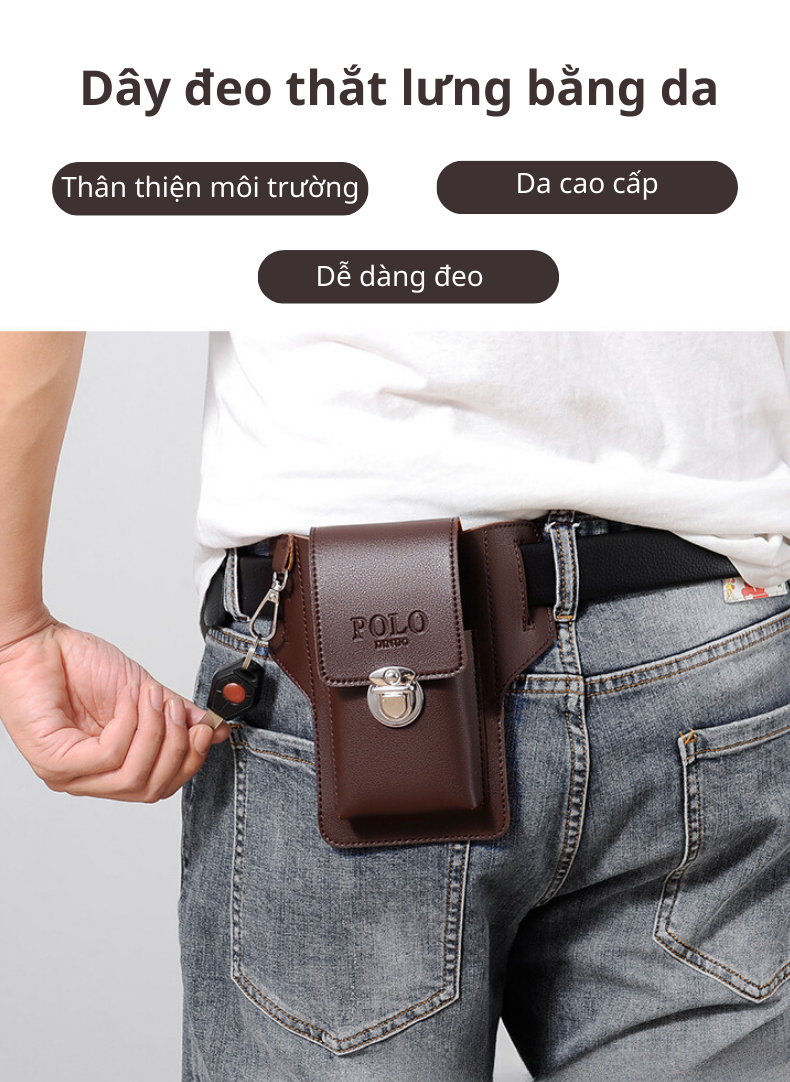 Túi đựng điện thoại chất liệu da PU cao cấp, dùng để đeo thắt lưng. Với thiết kế chống thấm nước, chống trầy xước, đa năng, tiện dụng. Đây là một món quà hoàn hảo cho quý ông.